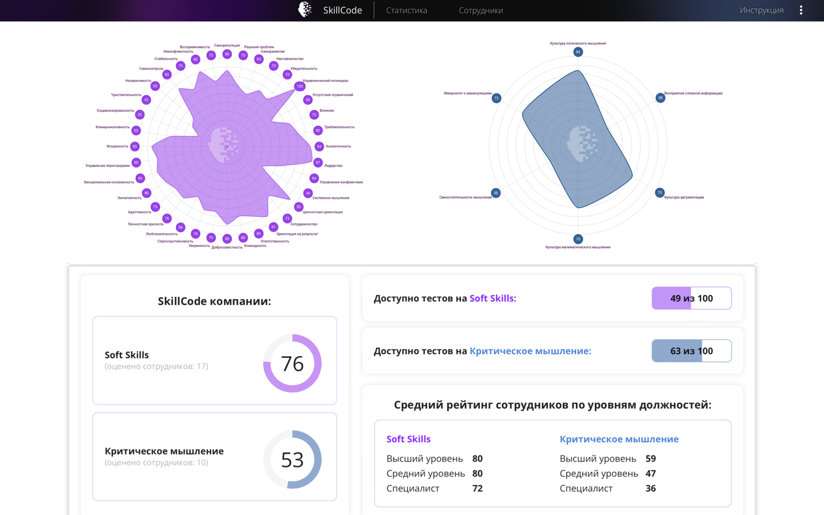 Если тема оценки критического мышления и лидерского потенциала актуальна для вашей команды, вы можете провести диагностику сотрудников и руководителей на платформе SkillCode. Универсальная модель по 46 параметрам, включая шесть когнитивных факторов критического мышления, позволит вам увидеть не только «какие у нас люди», но и как именно они думают и принимают решения в реальных условиях бизнеса.